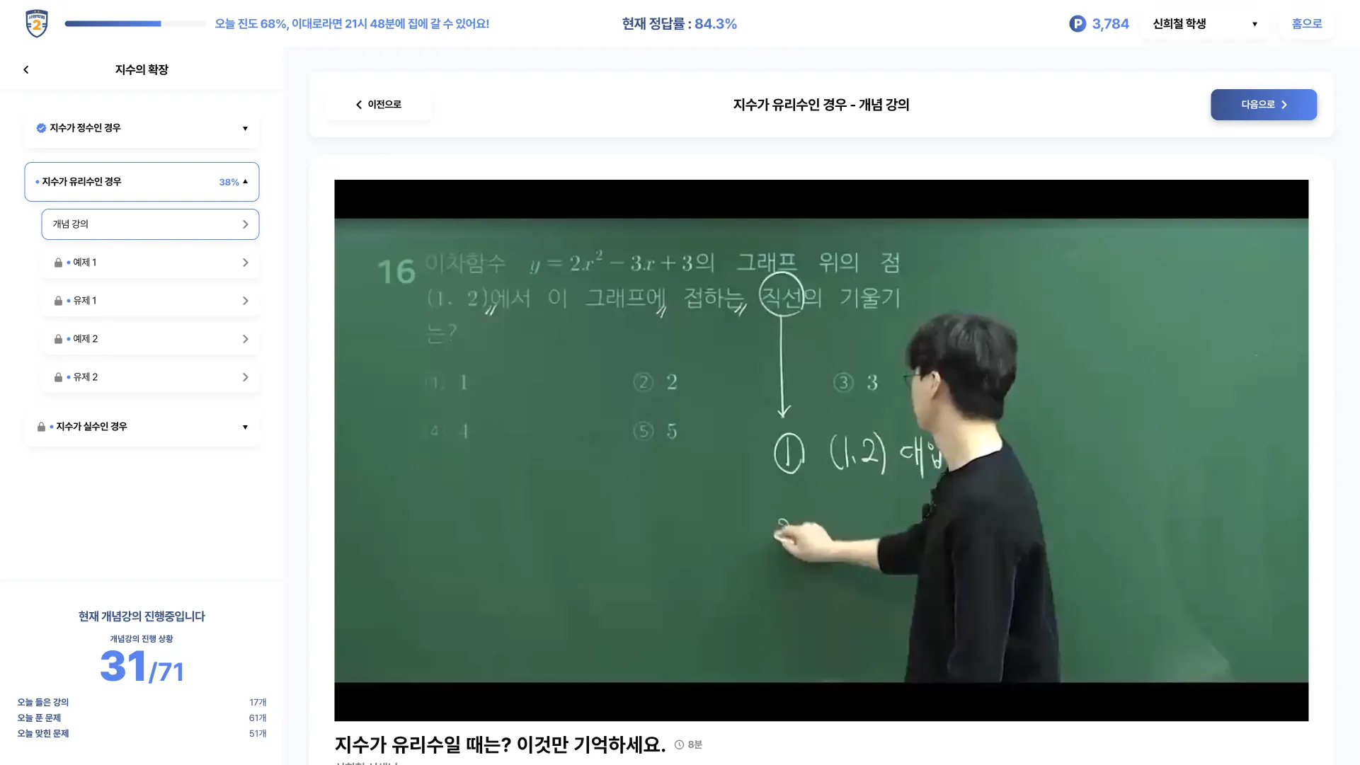 개념 / 유형 / 문제풀이를 최소 unit으로 분해하여 알고리즘 기반의 학습 제공