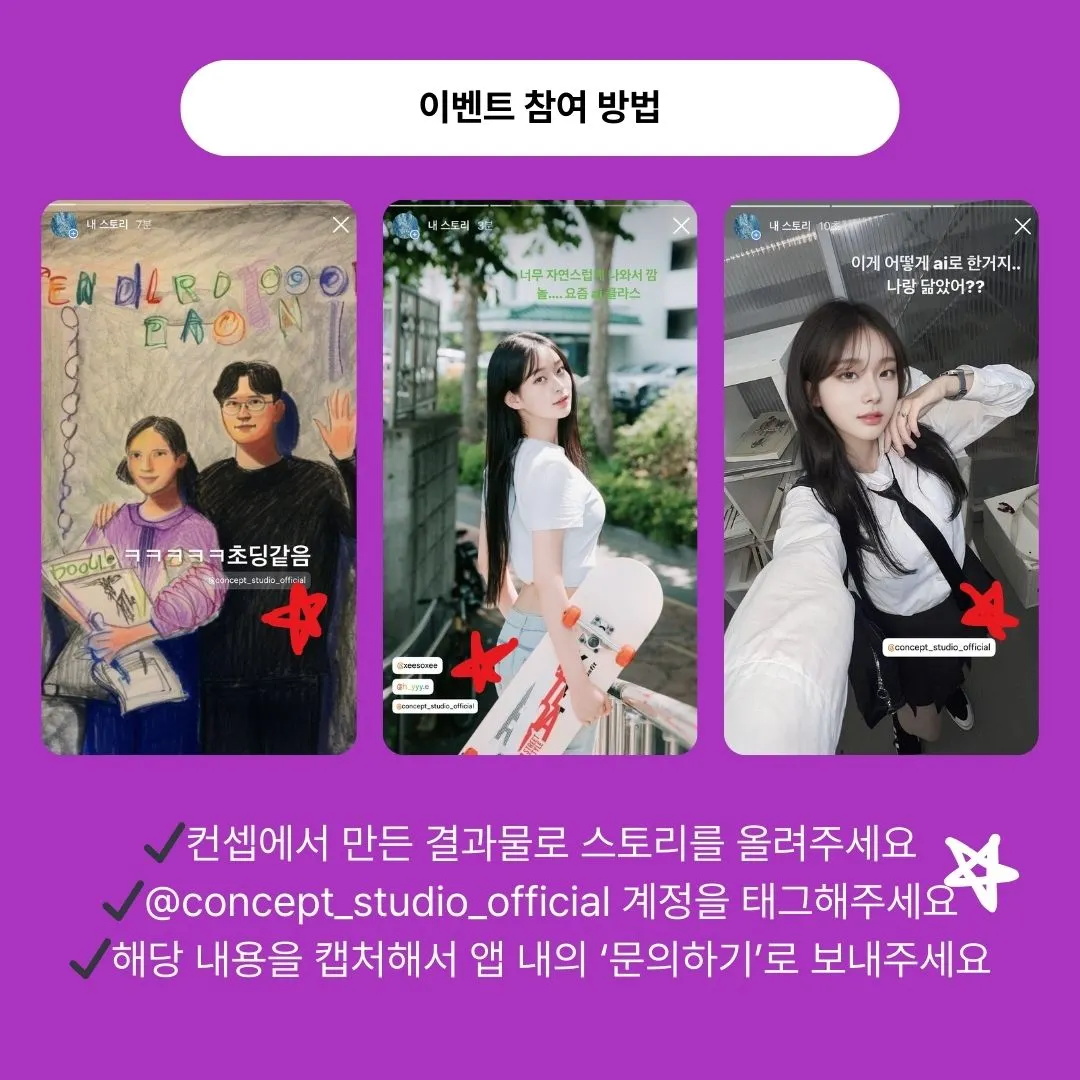컨셉에서 만든 결과물 아무거나 스토리로 올려주세요 (컨셉 계정 태그 필수