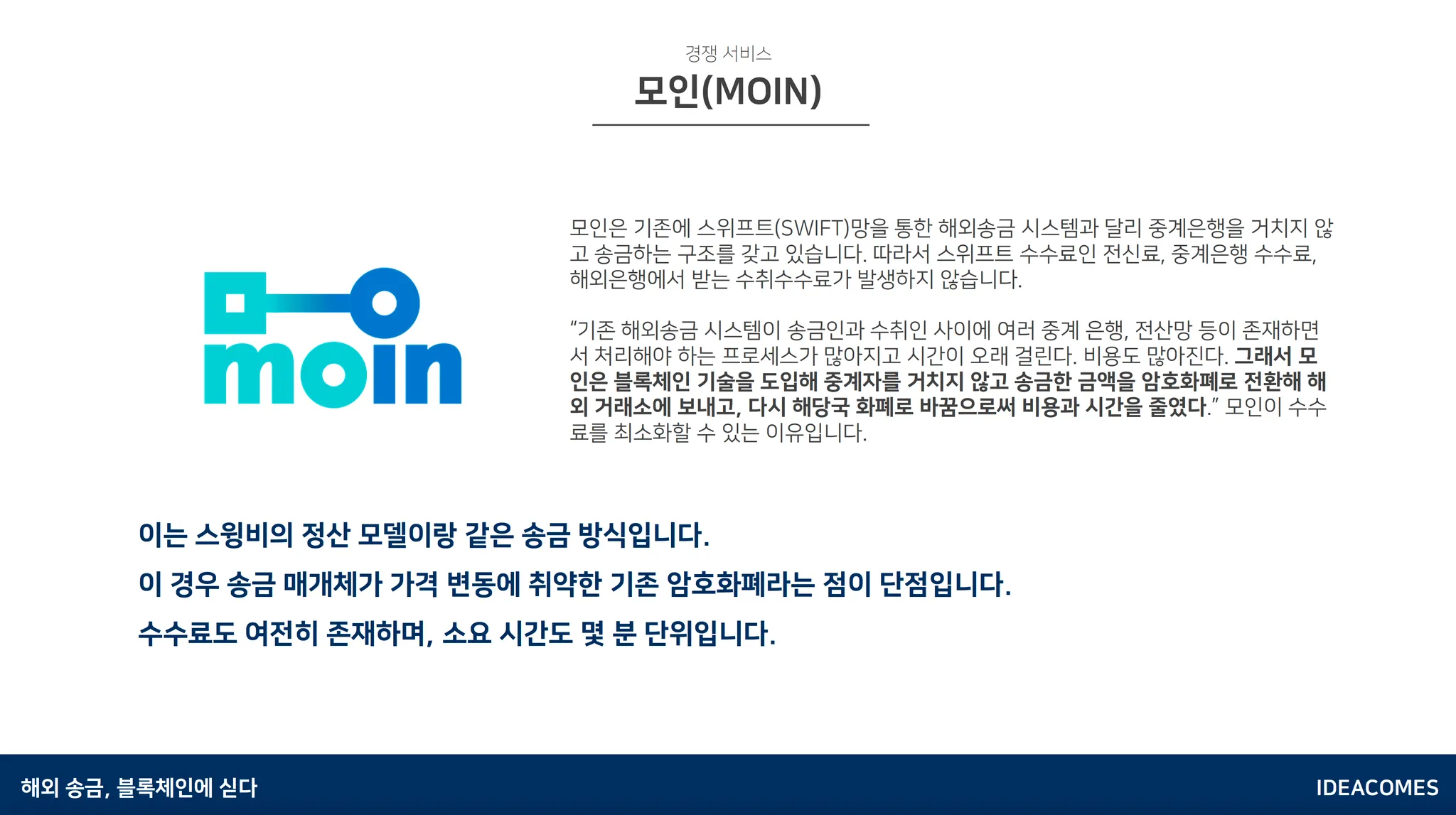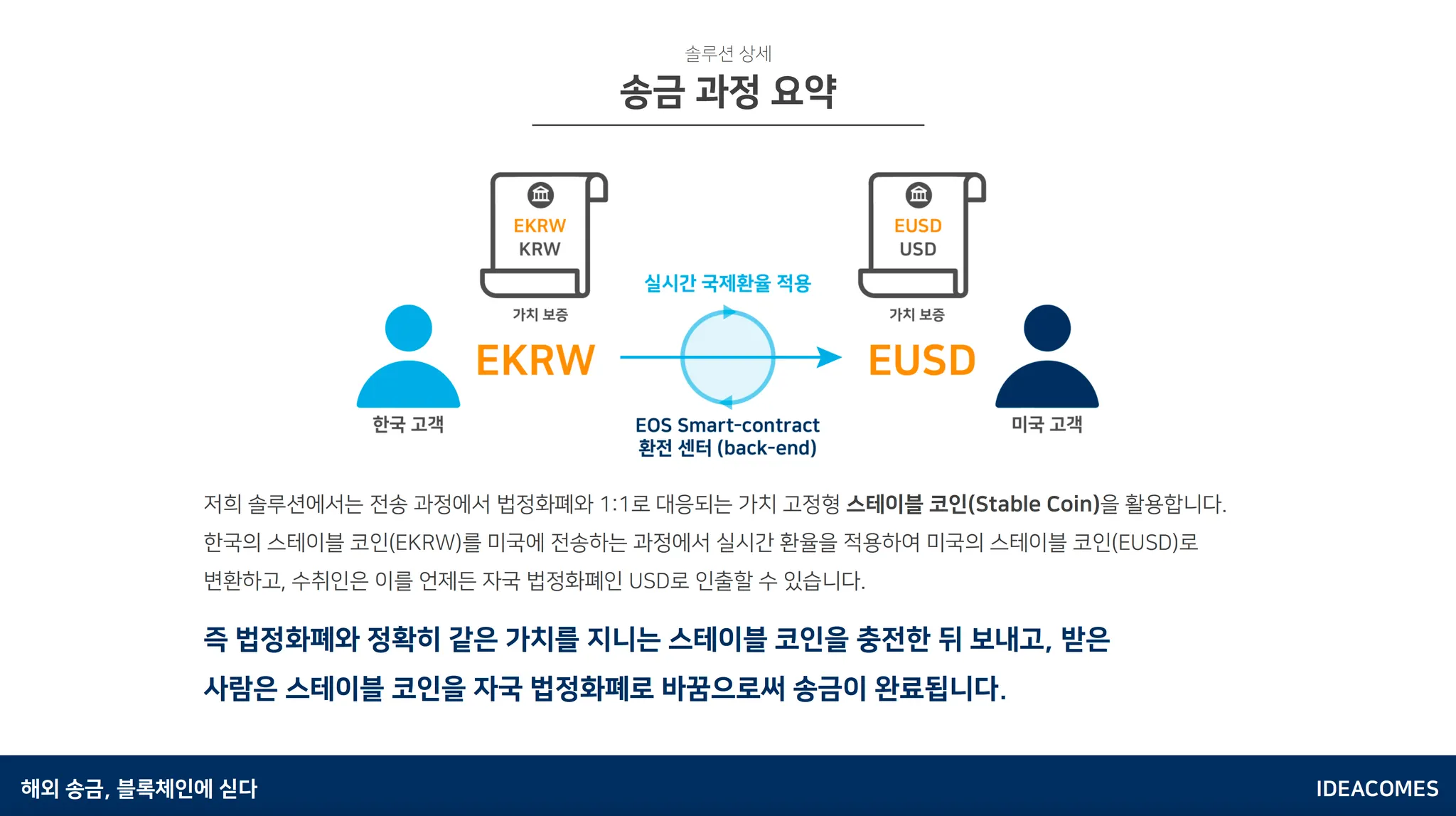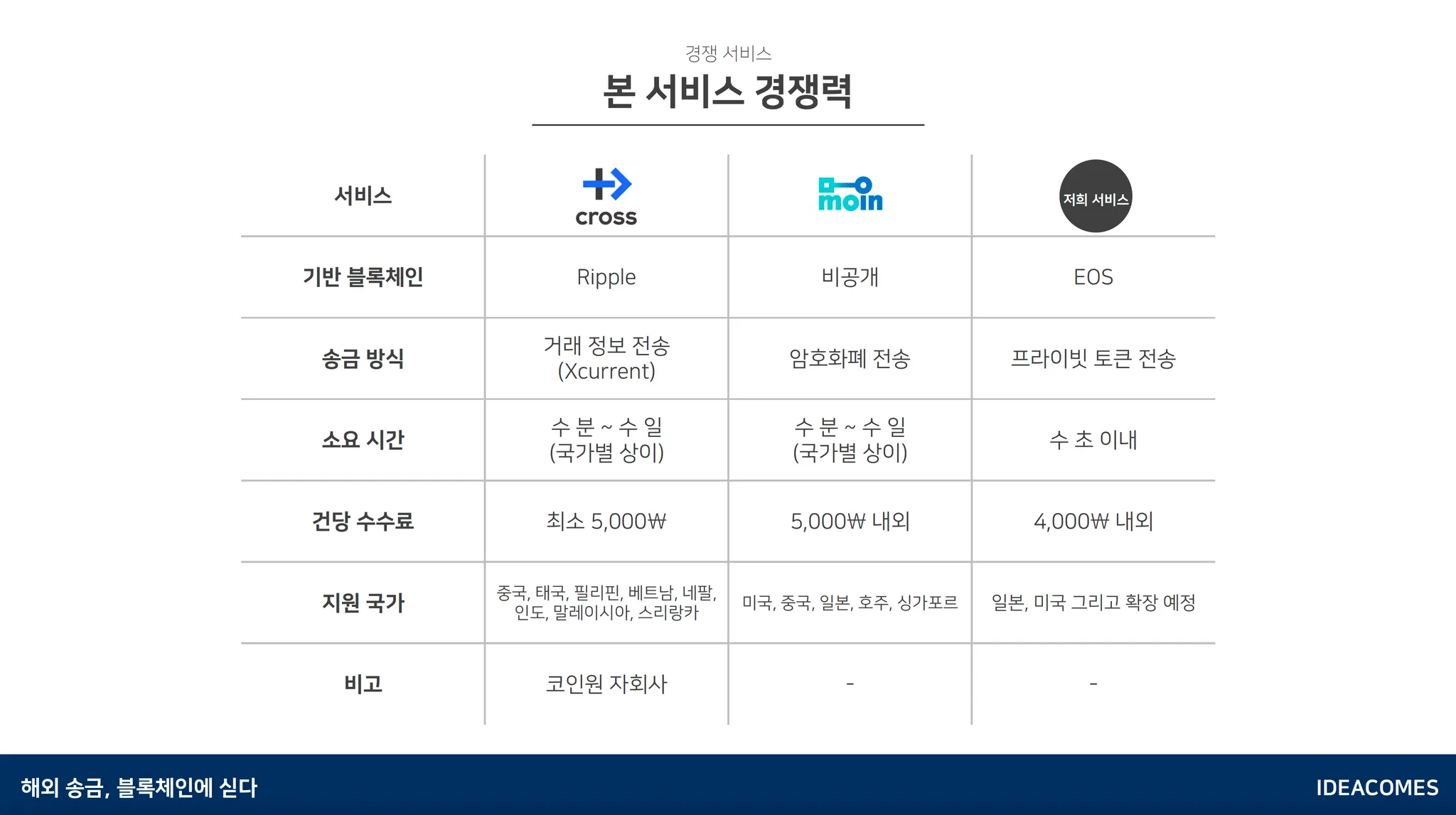 각국의 거래소들과 협약을 맺은 뒤, 법정화폐를 암호화폐로 환전 후 전송, 다시 상대 국가에서 법정화폐로 환전하는 방식입니다.