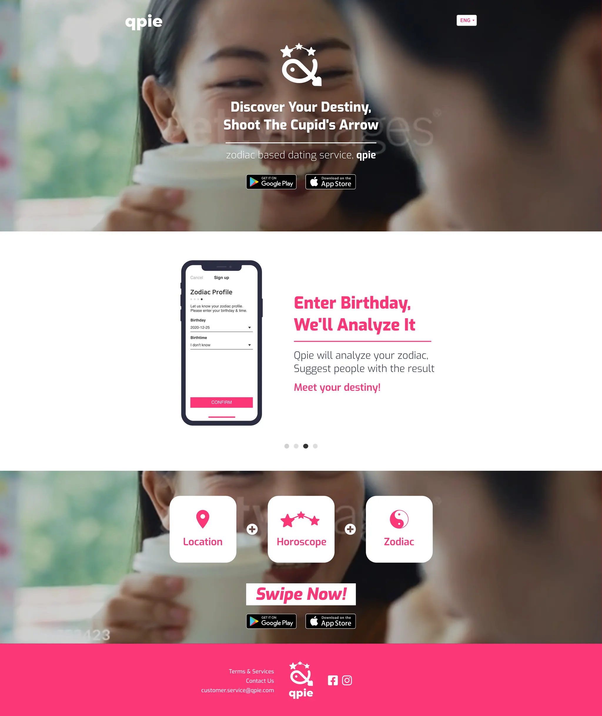 사주 기반으로 궁합이 좋은 상대방을 추천해주는 Tinder와 유사한 방식의 데이팅앱. 사주를 활용하는 동남아 국가에서도 운영하기 위해 영문 버전도 제작하였다. 외주 초기 Qpee라는 이름으로 시작했으나 이후 추가 의뢰로 ‘사주만나'로 리모델링되었다.