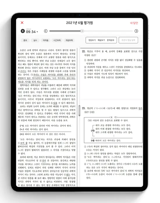 각 문제당 넉넉한 문제풀이 공간을 제공하여 펜을 활용하여 종이 위에서 푸는 듯한 경험을 제공합니다.