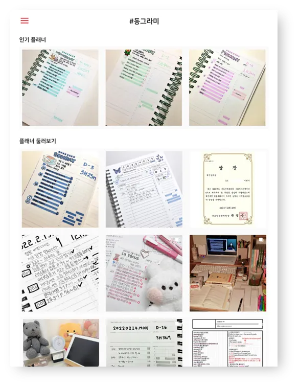 동그라미 학습 플래너에서는 자신의 개성대로 플래너를 꾸미고 스터디 그라운드에서 뽐낼 수 있습니다.