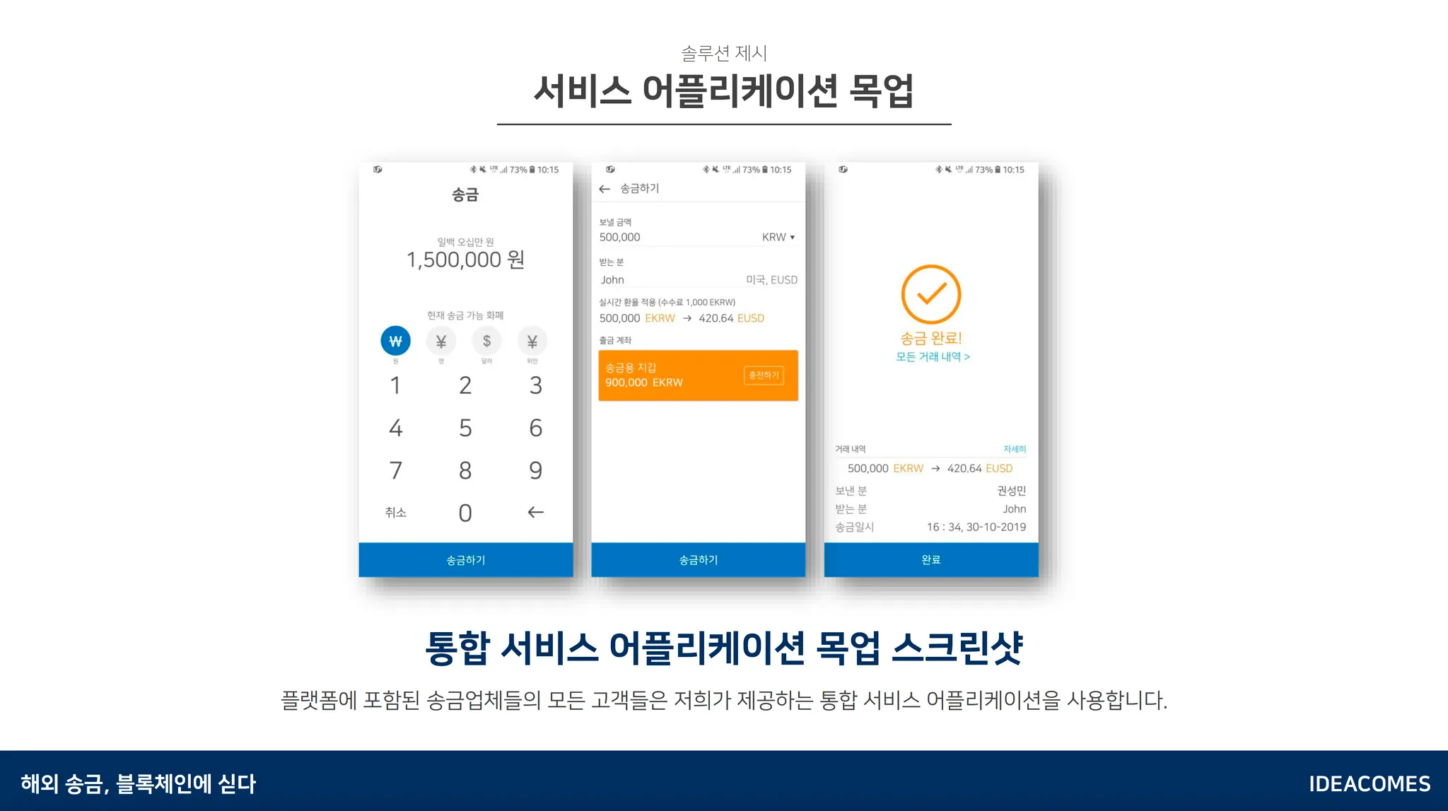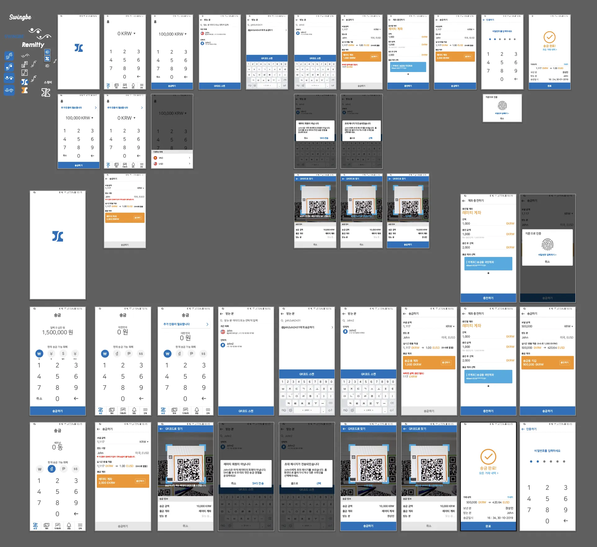 참고로 비디오 내에서 스플래시 화면의 로고는 바뀌기 전의 Remitty 로고. 전체 스크린샷은 본 문서 최하단에 Wireframe 미리보기 이미지로 대체함.