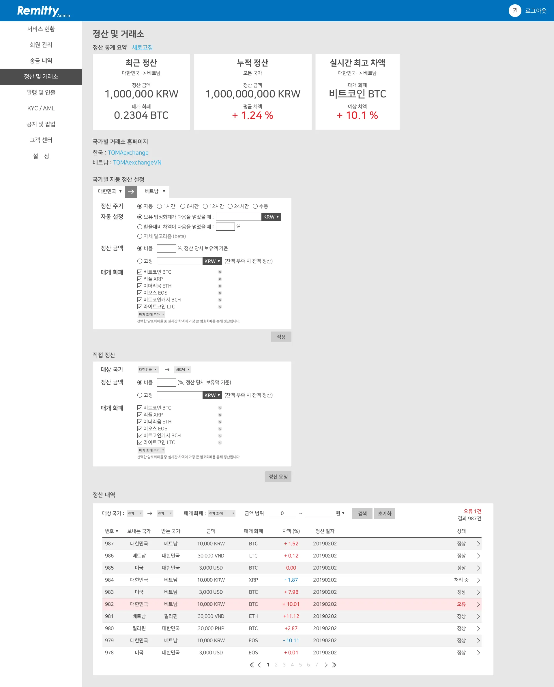 Admin Page(Swingbi로 변경 이전 서비스명 Remmity)